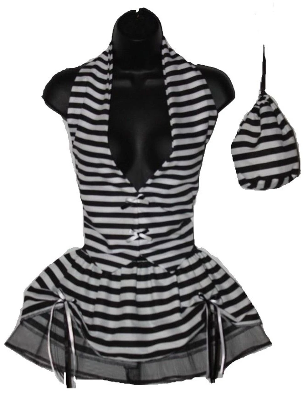 Sold By The Dragons Den. Sexy Convict Prisoner Waistcoat Pleated Tutu & Pouch Set Tutu Fits Size 8 – 14 UK Please Note Waistcoat Has No Back Elastic Straps Removable bow on skirt custom made.