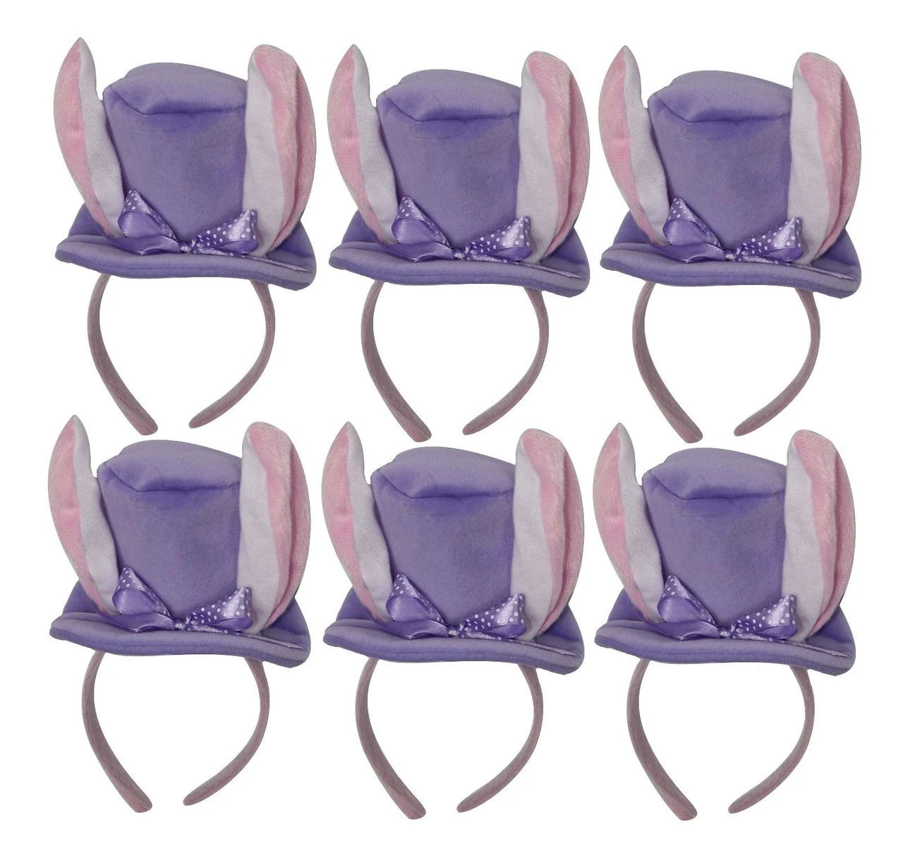 Ladies Plush mini top hat fascinatore in purple with plush bunny rabbit ears, perfect for easter fancy dress & Parties.