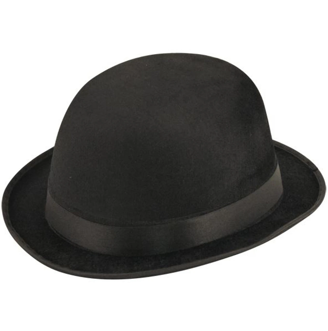 Black Bowler Hat comes with all black felt and black trim, perfect for charlie chaplin fancy dress or victorian folk.