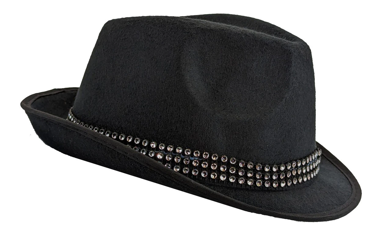 Adults Black Diamante Trilby Hat Jacko Micheal Jackson Billie Jean Pop Star Fancy Dress Costume Accessory [One Size]