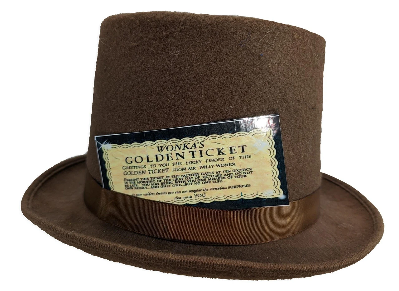 Adults Chocolate Factory Boss Top Hat & Golden Ticket