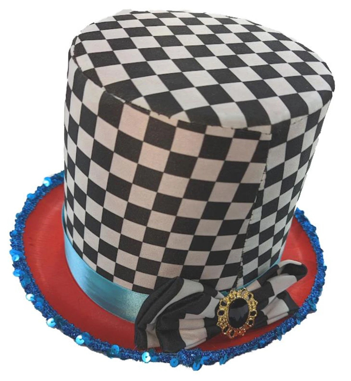 Adults Mad Hatter Checkered Stove Pipe Top Hat