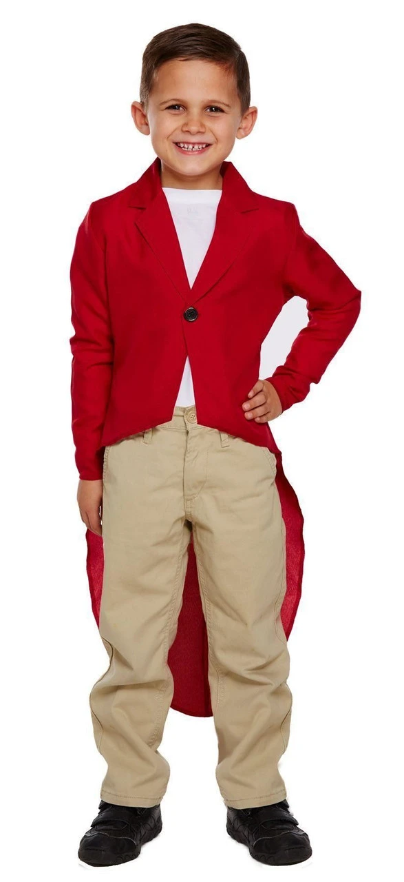 Childrens Red Fox Hunter Kids Huntsmen Fancy Dress Jacket. Comes in three sizes: Small (4-6 Years), Medium (7-9 Years) & Large (10-12 Years)