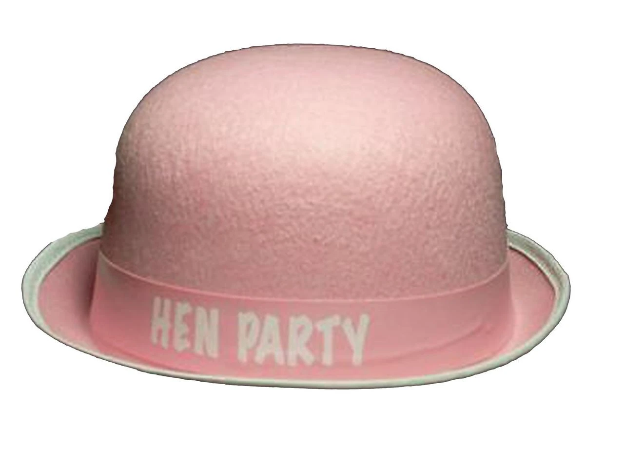 PINK BOWLER HAT / TEXT AROUND TRIM RIBBON