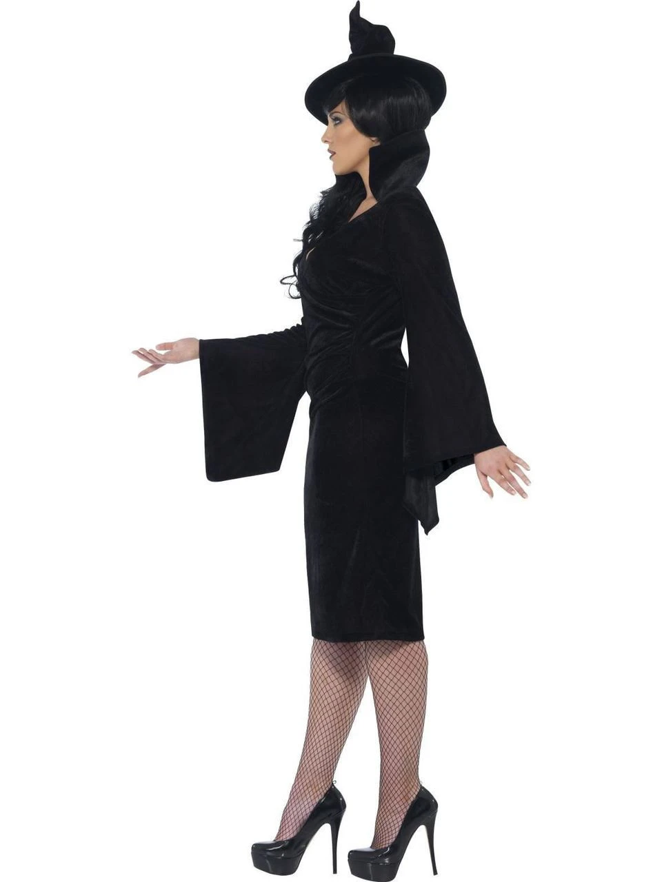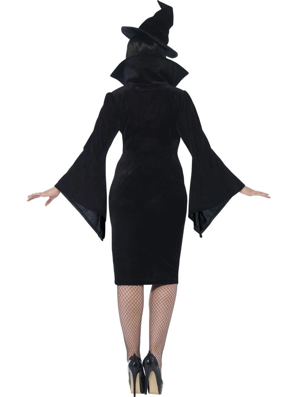 Ladies Black Curves Witch Fancy Dress Costume With Dress & Hat 06102015