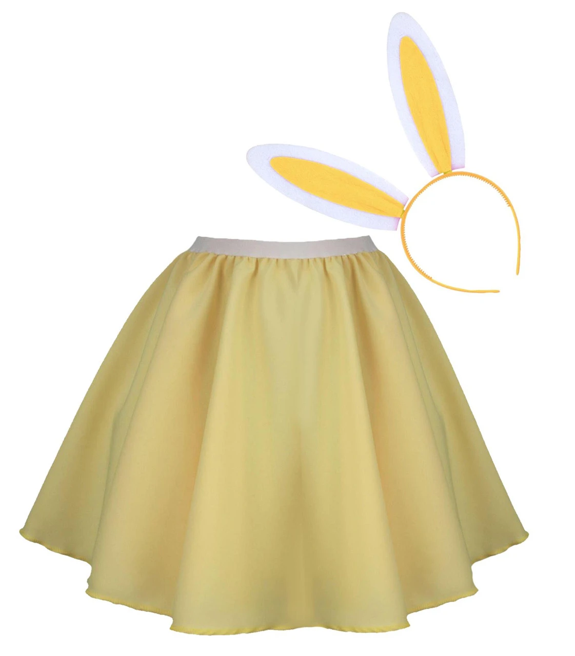 Ladies Pastel Yellow Bunny Girl Skater Skirt Set Cute Easter Fancy Dress Costume