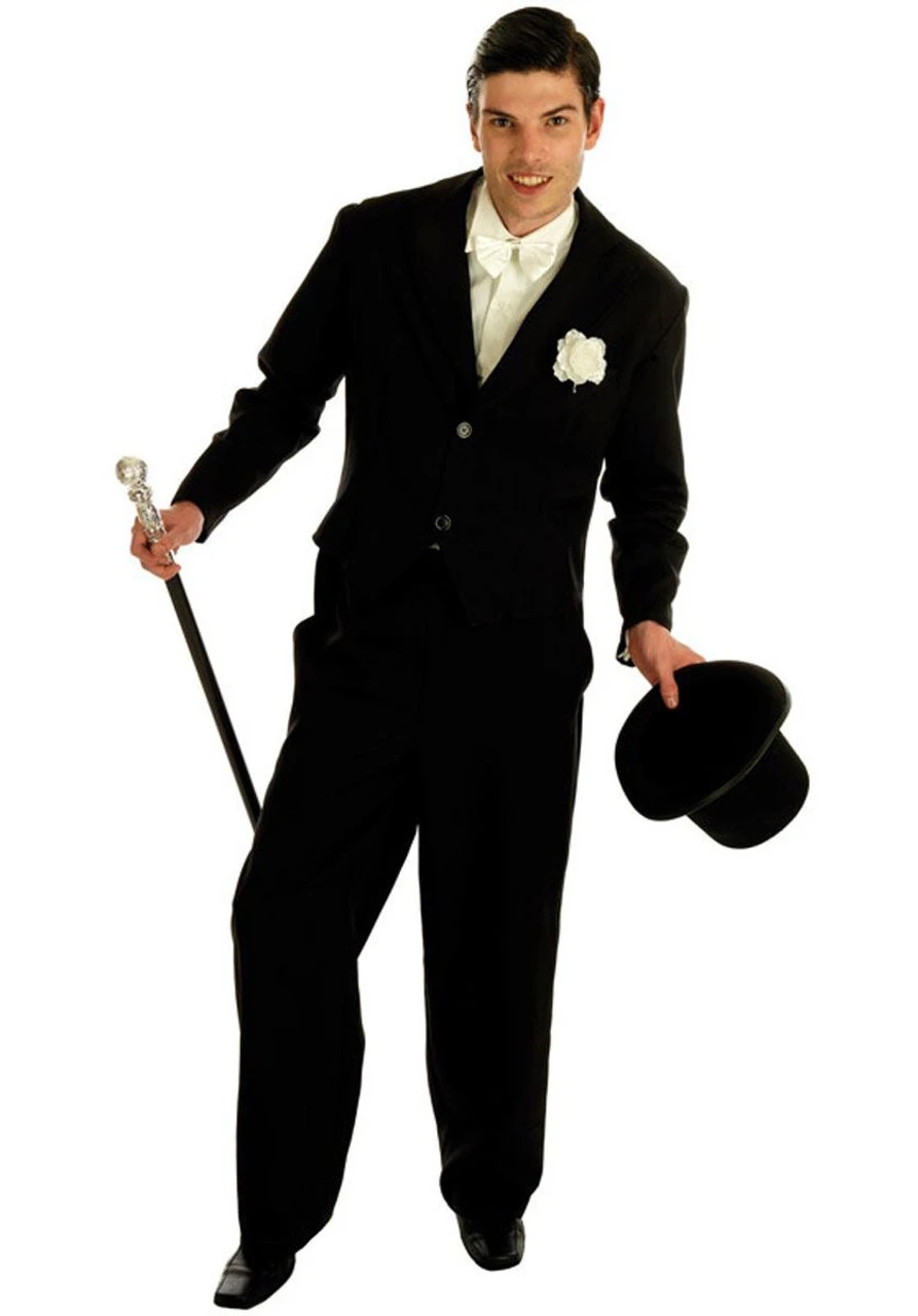 The fantastic 1930’s film star costume is inspired by the Singing in the Rain star Fred Astaire. This stylish men’s fancy dress look includes a tail coat, shirt, bow tie and trousers. Fred Astaire was the biggest film star in the world during the 1930’s, and one of the biggest stars in the history of Hollywood. This of course was a fantastic accomplishment considering his first Hollywood screen test resulted in the feed back, āCan’t sing. Can’t Act, Balding, Can dance a littleā. Fred Astaire persevered and has become one of the favourite icons of the silver screen. With this amazing 30’s film star costume you can do a little āsinging in the rainā on an unforgettable night out.