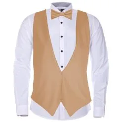 Adult Unisex Beige Camel Backless Waistcoats & Elasticated Dicky Bow Caberet Costume Accessory