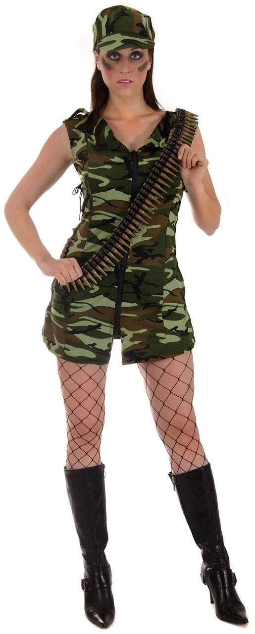 Female Sexy Army Girl Fancy Dress Costume, comes with Dress and Cap. Bullet belts sold Seperatly!