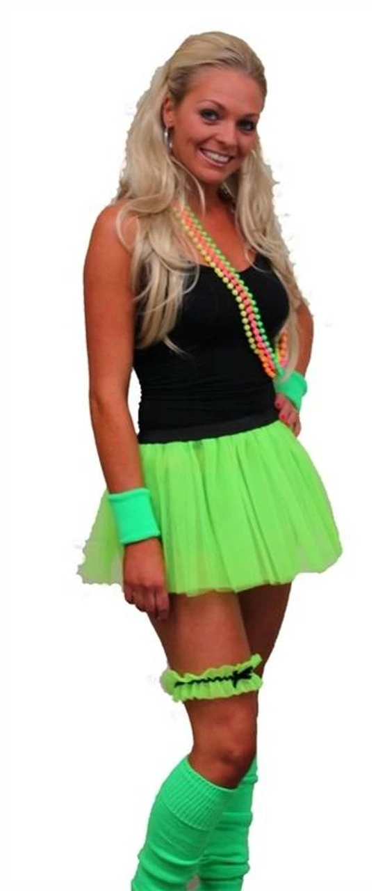 Adults Pleated Neon UV Tutu Skirt leg Warmers & Wrist Cuffs 1980’s 80’s Fancy Dress Costume